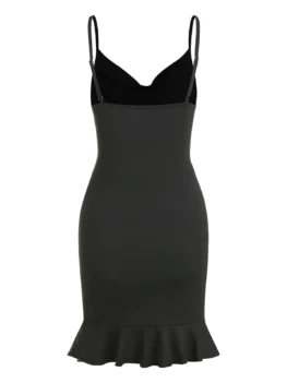 • Spaghetti Strap Ruffle Hem Cinched Sheath Dress