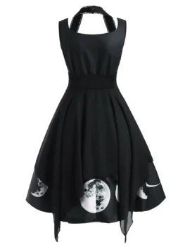 This dress is simple with a lunar eclipse pattern, while the corset makes the casual dress unique! The lace-up helps to highlight your slim waist, and the lace insert hints your feminine side. Style: Gothic Occasion: Casual ,Halloween Material: Polyester,Polyurethane Silhouette: A-Line Dresses Length: Knee-Length Neckline: Sweetheart Neck Sleeve Length: Sleeveless Waist: Empire Embellishment: Lace,Lace up Pattern Type: Moon With Belt: No Season: Fall,Spring,Summer Weight: 0.5700kg Package Contents: 1…