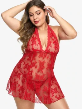 With the charming halter neckline and the flirty lace texture for a seductive feminine style that allows showing your pretty curves, this plus size lingerie babydoll is a perfect choice to end the crazy night in style. Materials: Polyester,Spandex Bra Style: Unlined Cup Shape: Three Quarters(3/4 Cup) Support Type: Wire Free Strap Type: Halter Closure Style: None Pattern Type: Solid Embellishment: Lace,See…