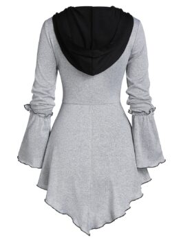 Trumpet Sleeve Hooded Ruffled Sweater