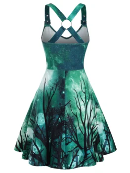 Trees Galaxy Print Lace Up Back Criss-cross Dress