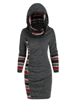 Style: Fashion Occasion: Day Material: Polyester,Polyurethane Silhouette: Bodycon Dresses Length: Mini Neckline: Hooded Sleeve Length: Long Sleeves Pattern Type: Print Fabric Stretch: No Stretch With Belt: No Season: Fall,Spring Weight: 0.3900kg Package Contents: 1 x Dress