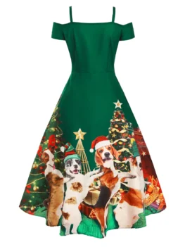 Showcasing a flattering Christmas look with the cute cat, snowflake print, this plus size dress has a charming halter neckline and the classic fit-and-flare silhouette to make for the perfect coverage. Style: Vintage Material: Cotton,Polyester Silhouette: A-Line Dresses Length: Mini Neckline: Halter Sleeve Length: Sleeveless Pattern Type: Cat,Christmas Tree,Snowflake Elasticity: Nonelastic With Belt: No Season: Fall,Spring,Winter Weight: 0.3550kg Package Contents: 1 x Dress SHOW LESS